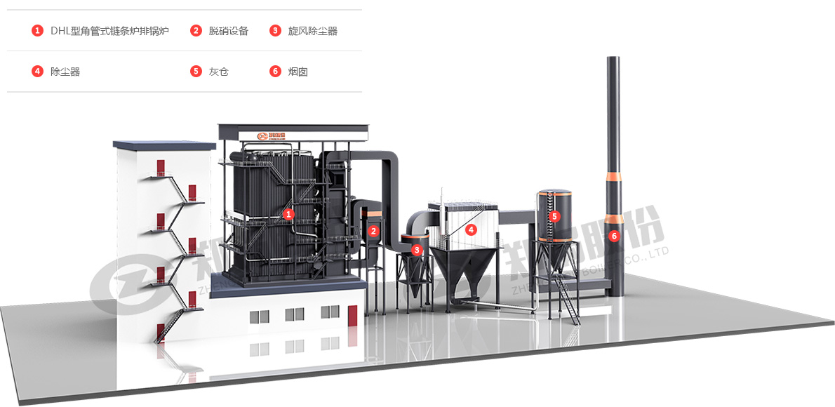 DHL型角管式鏈條爐排鍋爐(單鍋筒橫置式鏈條爐排鍋爐)
